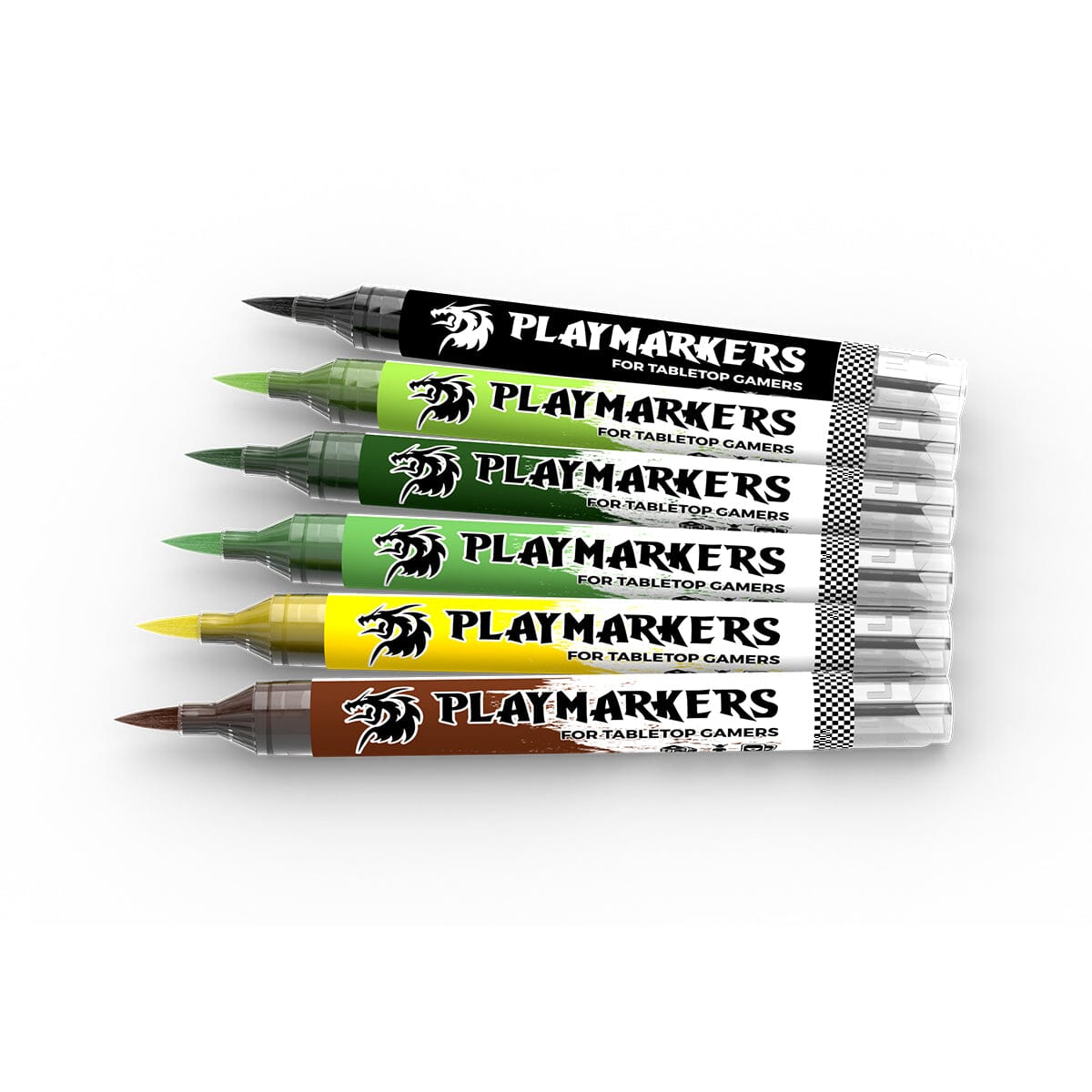This set contains six colors commonly used for painting green-skinned figures, such as orcs and goblins, in a variety of games.