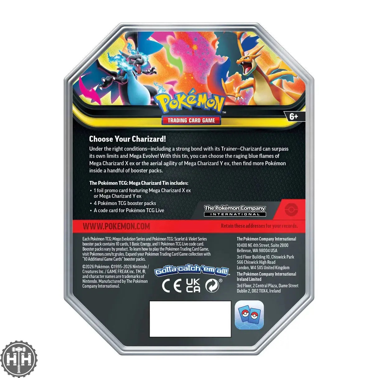 The Pokémon TCG: Mega Charizard Tin includes: