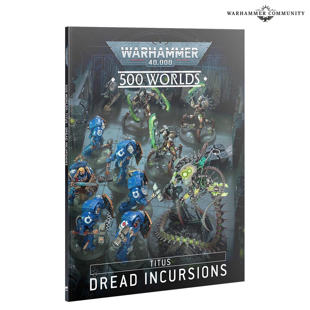 500 Worlds: Titus – Dread Incursions contains rules for Boarding Actions games set during the battles raging across the breadth of Ultramar. The core rules for Boarding Actions are reprinted, with 12 new missions – six for the standard terrain, and six for Tomb World terrain – plus extra rules adaptations, and two new Detachments – Shield of the Void for the Space Marines, and the Harbinger Cabal for the Necrons. There is also a set of four Dread Incursion Campaigns, with rules for fighting in voidships, Necron tomb complexes, deadly ship-to-ship battles, and in ruined space hulks and long-forgotten tombs.