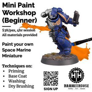 The subject would be to paint up a Space Marine from the Warhammer 40,000 universe! It's $38 per pax for a 4-hour session, with all materials provided and a instructor to guide you through our structured program to get you going