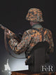 In our bust, we have decided to portray a specialist infantry soldier (SS- Unterscharführer) from one of these units. He wears some standard equipment that spans more or less the period between 1940 and 1944. The camouflage garments can be decorated with diverse patterns.