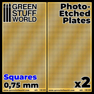 Photo etched metal plates made of brass with very fine details for decorating dioramas and miniatures. They can be easily cut with a pair of scissors to achieve the desired size.