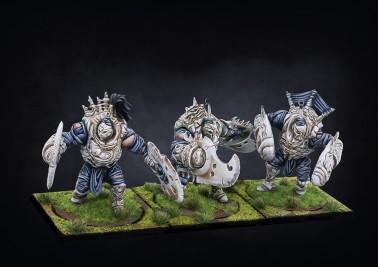 Towering well over two meters, with most specimens touching the three meter mark, Brute Drones are a towering mass of vat grown muscle and aggression. Their skin, where it can be seen beneath the ichor soaked bandages they bear, is a ravaged mass of scar tissue and subdermal bone deposits. Their armor is literally sealed onto their bodies, held in place by alchemically treated cartouches that establish Lineage ownership, lot number and enhancement date of the particular drone.