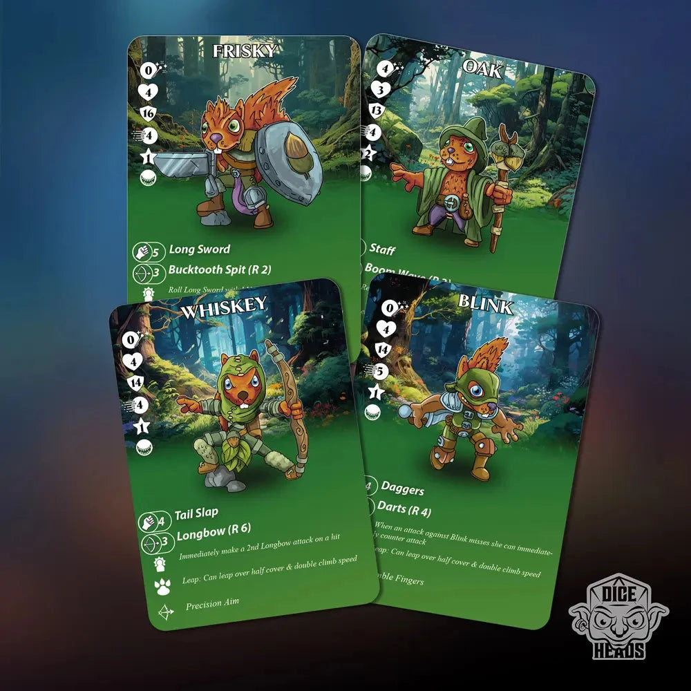 The complete Swift Squirrels Guild collection. This collection includes Frisky Fighter, Whiskey- Ranger, Blink- Rogue and Oak- Wizard characters, all ready to be deployed into fantasy action.