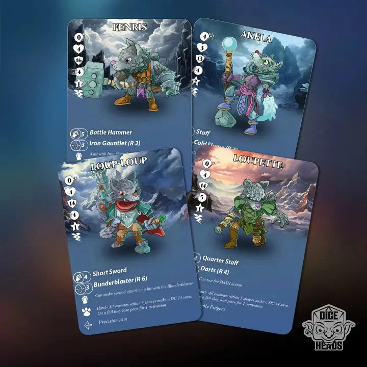 This pack includes four heroic wolf characters: Fenris the Fighter, Akela the Mage, Loup-Loup the Ranger, and Loupette the Rogue — each ready to leap into fantasy skirmish action or your next narrative campaign.
